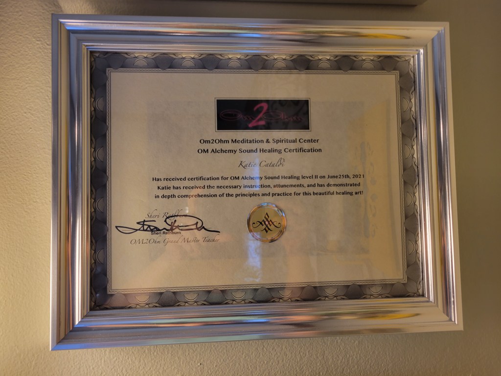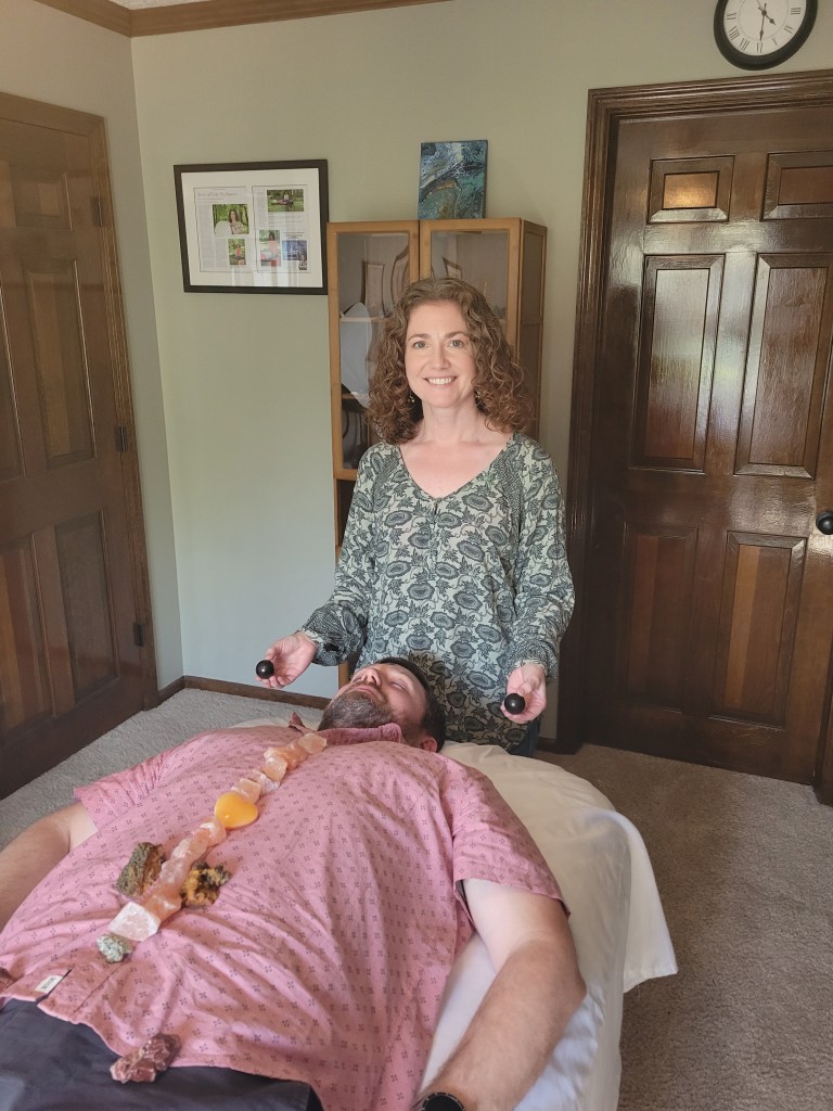 I began studying sound healing in 2019 and in 2020 I received my certification as a level 1 and 2 sound healing practitioner. Sound healing is one of the original forms of healing that dates back thousands of years when shamans would use drums and their voice to promote healing in their patient. Then our great ancient cultures, like Egypt, took it to the next level by creating sound chambers to optimize healing and many instruments were invented. Modern sound therapy was rediscovered in the 1930s when ultrasound was discovered and used medicinally. Ultrasound is regularly used to break up kidney stones and it can also shrink tumors. In the 1960s Sir Peter Guy Manners began developing tuning fork therapy. Finally in the 1970s and 1980s singing bowls began being used for sound healing. You may remember from middle school science (a unit I loved to teach) that all atoms are in motion. The atoms of solids vibrate, liquids slide past each other, and gases move freely. Different chakras in our body vibrate at different frequencies like notes in a scale. When there is trauma, disease, or an injury, that body part often begins to vibrate at the wrong frequency. This is like someone playing the wrong note or being out of tune (this takes me back to my marching band days). Sound healing practitioners locate areas that need tuned and use various items to bring those areas back to the correct frequency. Once the cells are vibrating at the correct frequency, the body can heal itself. Sound healing practitioners have a variety of tools, but the most common tools are drums, rattles, crystal singing bowls, metal singing bowls, crystal pyramids, their voice, music, and tuning forks. Forks and singing bowls are held above or on the body. These tools are also used to cleanse and heal the energy field that surrounds us. Research in sound and music therapy has taken off in recent years and it’s an exciting time to be a sound healing practitioner. They are making more and more discoveries. There are even studies showing tumors shrinking in mice after undergoing sound therapy. Take a look at the link below to see a compilation of articles from my teacher’s teacher, Eileen Day McKusick.
