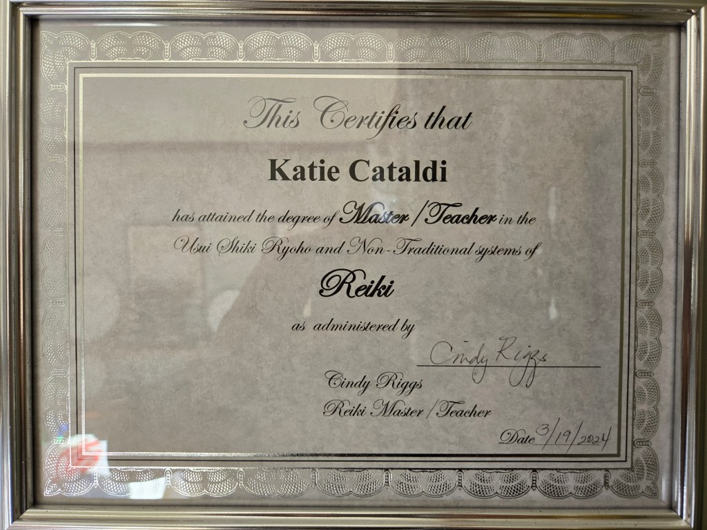 Animals have always been a part of my life. Growing up we had a cat and many Golden Retriever dogs. My family and I trained and competed with them in several different disciplines. In addition, I would take my therapy dogs to nursing homes to visit the elderly. I started training and competing when I was 9 and this was a hobby of mine until 2024. I also grew up riding horses and love spending time with them as well. I originally wanted to be a veterinarian, but then decided that teaching was a better fit for me. However, now I get to use my healing gifts with animals! Animals love getting Reiki and most will relax for a session. The session length can be a bit unpredictable due to the animal’s age, personality, and health challenges. My cats often like shorter sessions, but my older dogs would take a half hour to an hour. Occasionally animals prefer to have a hands-off session where I send them distance Reiki as well.
